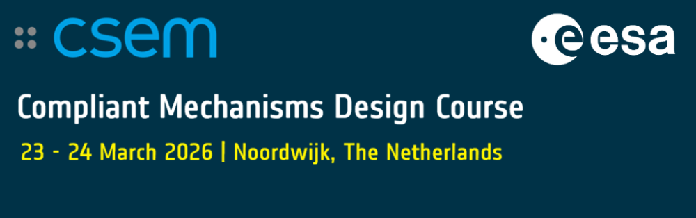 Thank you for registering to the Compliant Mechanisms Design Course! You will soon receive a confirmation e-mail including a summary of the registration data you have entered. If you have selected the option to "Pay Later" via bank transfer, you will find an invoice attached to the confirmation e-mail. If you have already made payment by credit card, you will find a receipt attached to the confirmation e-mail.
