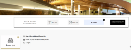 In case you want to extend your stay with a night before or night after you can book via the link on the website of the hotel https://hotel.hardrock.com/tenerife/.