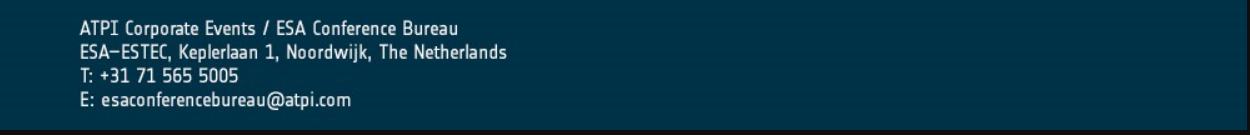 The number of participants to the SOIDT is limited to 65. The participants will be selected on a first come first serve basis. However, the event is conceived following the values reported in the ESA Convention, namely to “facilitate the exchange of scientific and technical information pertaining to the fields of space research and technology and their space applications”. Although participants are not required to disclose any sensitive information, networking and sharing lessons learned are a trademark of the SOIDT. We therefore welcome participants able to comply with this learning approach.